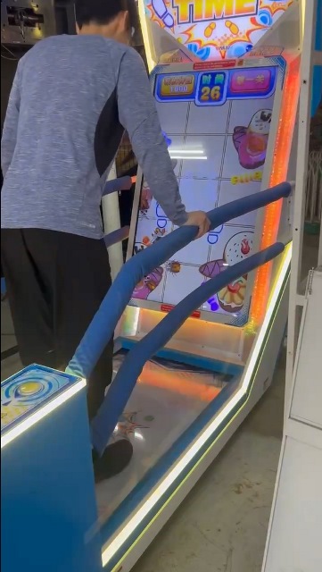 2. 遊戲一開始玩家需站上觸控板,透過腳踩的方式進行遊戲。